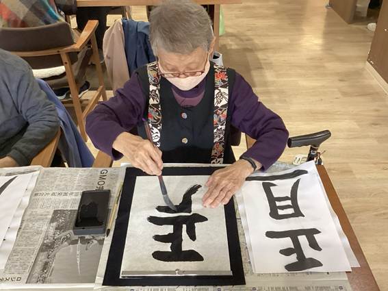 ご利用者の皆さまに書道の楽しさを伝える事を目的として、全員で取り組みます。