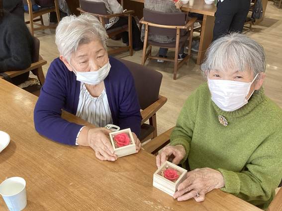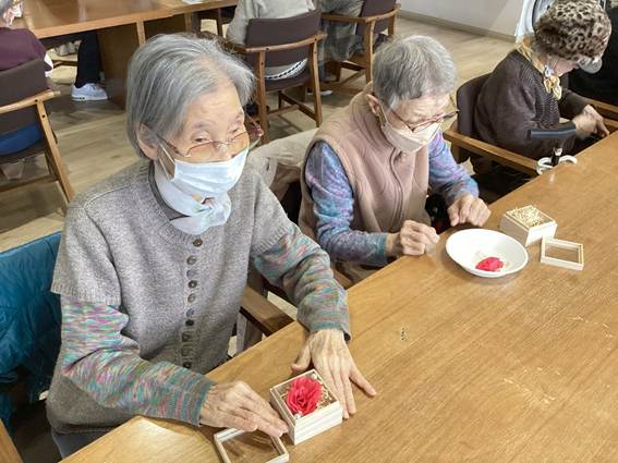 デイサービス2月の小物作りは、「アロマフラワーボックス」です。
