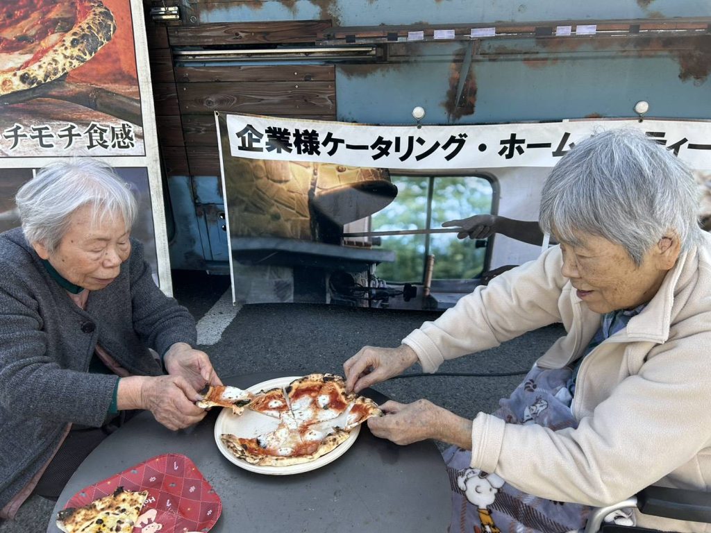 ご利用者も店先に備えられたテーブルで、焼きたてピザランチを召し上がっていました。