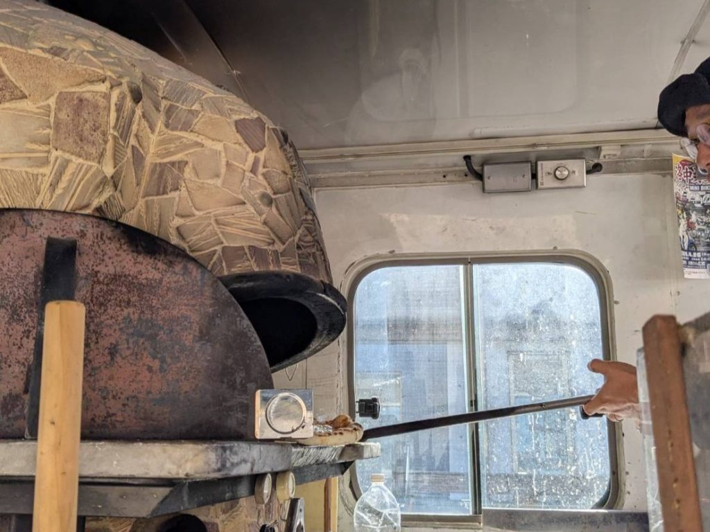 当法人理事長のご厚意によるご紹介で、犬鳴山荘にピザ釜を載せたキッチンカーで登場です。